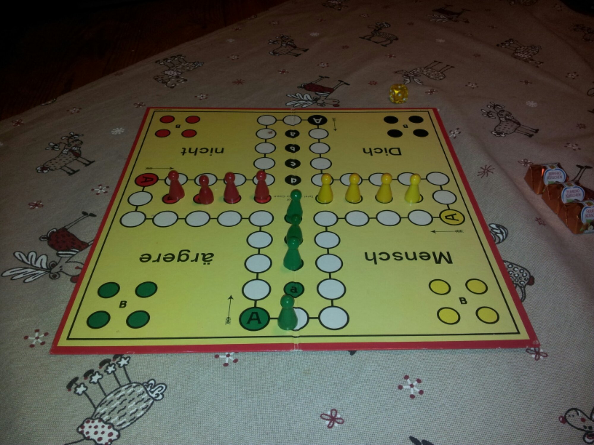 Mensch ärgere Dich nicht Das erste Spiel des Jahres habe ich wohl knapp verloren. Aber wie heißt es so schön: Pech im Spiel. Glück in der Liebe. Also Mädels, passt auf Euch auf. 😉